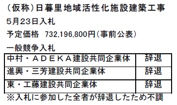 (仮称)日暮里地域活性化施設の入札不調で議会に提案見送り