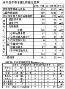 4月新規入園の申込み・不承諾・待機児のまとめが報告されました(下表上)。