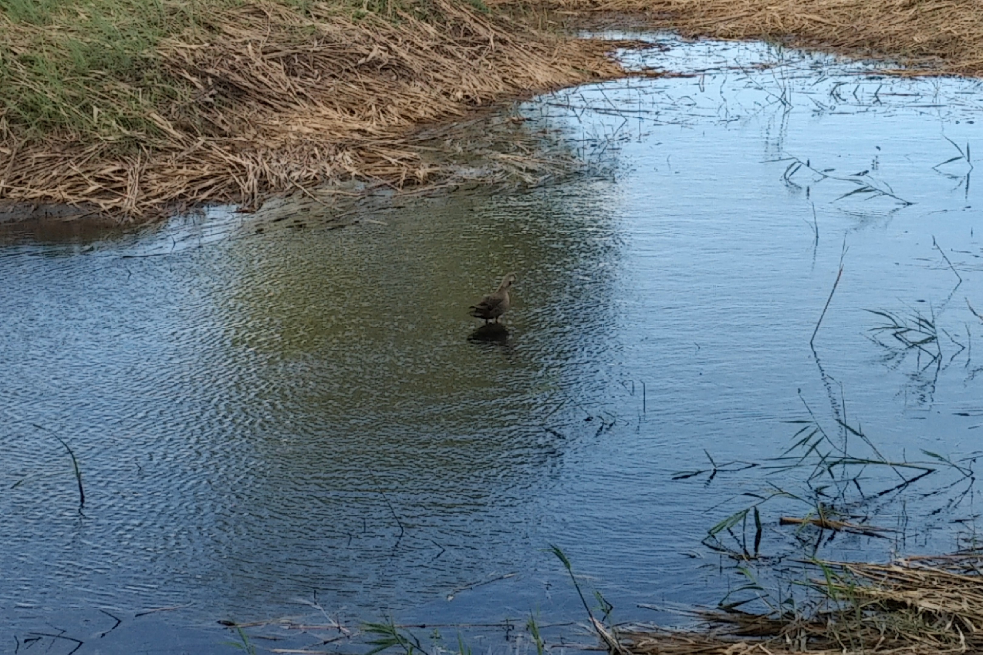 うだるような猛暑が続いていますが…ところで尾久の原公園の池に一羽のカモが…?