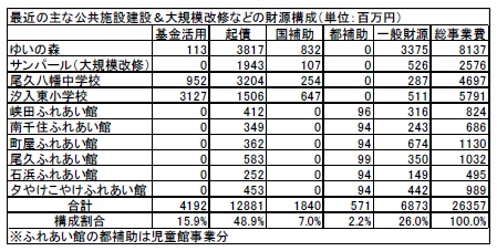 建物で建築と大規模修繕では多少財源が違いますが、現状、基金活用は、15%程度となっています。公共施設の改修や更新にあたって、多くの部分を起債で対応し、基金の取り崩しは一部です。これは世代間の負担の公平面からみても当然です。また、財政調整基金は、既に区の標準財政規模30%まで積み上げており、通常1~2割が適正といわれており、現状でもやはり過剰ではないでしょうか。
