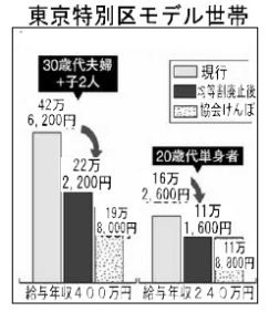 他の健康保険は、所得に応じた負担だけで、均等割がありません。そのため、国保料が協会けんぽに比べ20万円以上高い世帯もあります。やはり年収の1割を超える保険料額は異常です。政府は全体の3割しか支出せず、都も責任を果たしていません。また、区としても法定外繰入金の削減を止めて、多子世帯の均等割の減額免除制度を実施するなどくらし応援が強く求められます。(下表、グラフ参照)