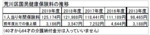 今回の国民健康保険料(以下国保料)改定は、一人当たり3,186円の値上げ、そのうち加入者1人1人にかかる均等割りが年間1,200円の値上げとなります。