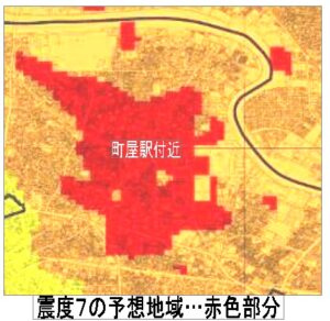 最も大きな被害が想定されるのは都心東部直下地震であり、ほぼ区内全域が震度6強、内震度7(左地図)が町屋、東尾久、荒川の木造密集地域に大きく広がっています。建物の全壊、焼失8379棟で想定死者数の大きな要因となっています。やはり、住宅耐震化・不燃化は、待ったなしです。区民の誰もが命が守られる安全な住宅に住むため、あらゆる支援を行うべきです。
