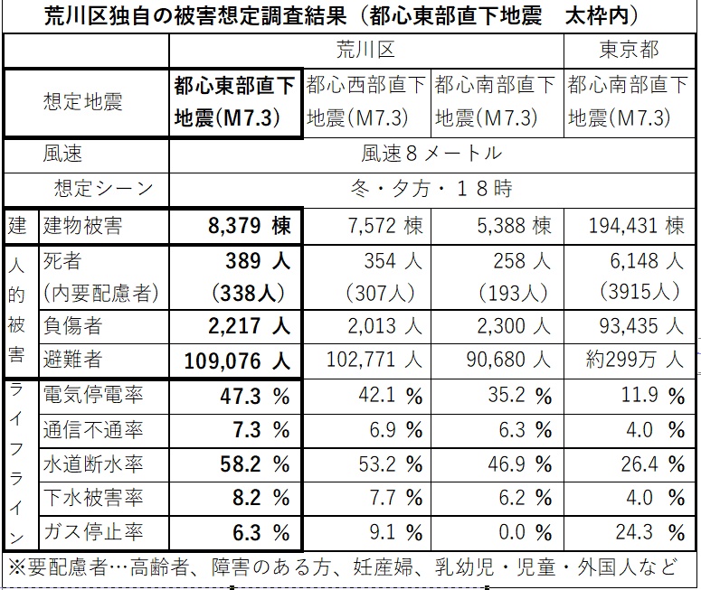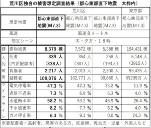3月22日、区は、地域防災計画修正案と独自被害想定を議会に報告しました。した。(左表太枠内)