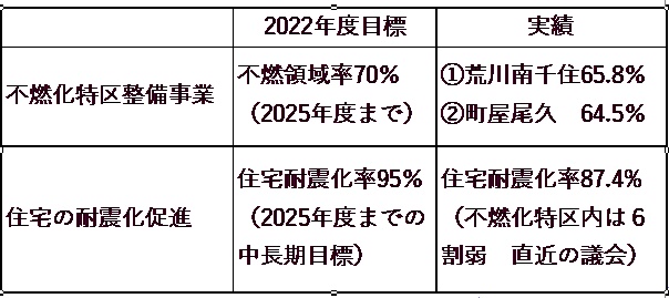 しかし災害を未然防ぐ減災目標は、人的・物的被害の半減となっています。区は、「一人の犠牲者も出さない」を掲げています。であれば、少なくとも犠牲者ゼロ、建物倒壊ゼロを目標にすべきではないでしょうか。
